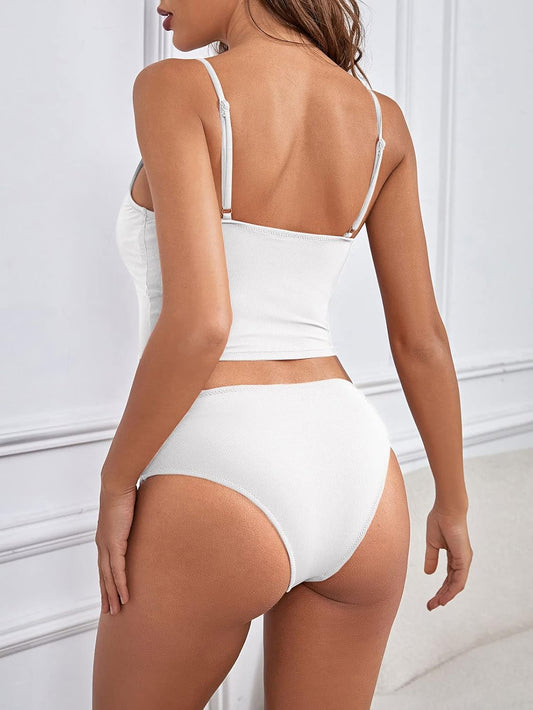 Ribbed Bikini Sets for Women High Cut Cheeky Swimsuits Scoop Neck Padded Bathing Suits Two Piece Tankini Set